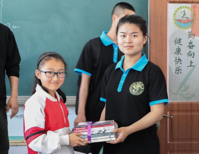 在五月十六日上午志愿团到达黑岛镇中心小学,与校长和老师交流后,我们向黑岛小学赠送了美术作品及书籍,并进行了现场作画,送给了孩子们。
