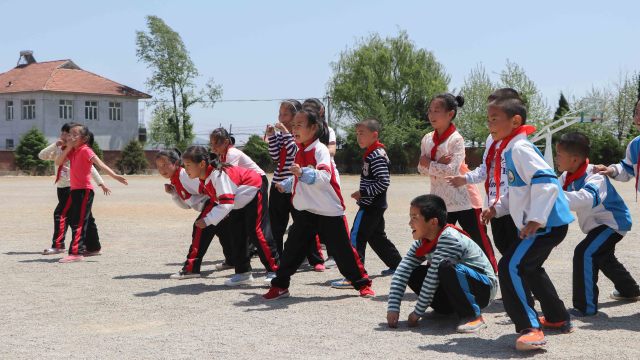 课堂教学交流结束后,我们和同学们来到了操场,进行体育活动。