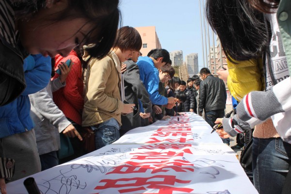 3月28日,jdb电子游戏官方网站在校的全体学生在学院操场举行“学生自律约定15条”签名活动。