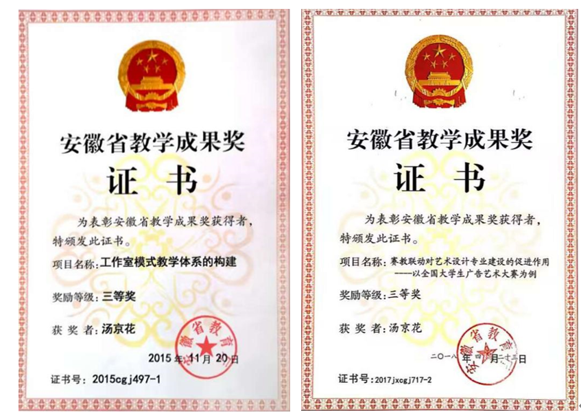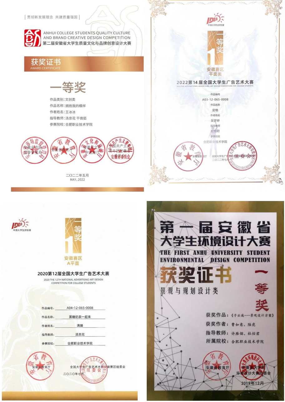 【专业建设成果】通过多年的教学经验积累,专业建设成果丰硕,取得安徽省教学成果奖3项,省级质量工程项目5项,包括广告设计与制作综合改革试点专业、艺点文创空间创客实验室建设计划、 大规模在线开放课程(MOOC)示范项目《展示设计》、《企业形象设计》等;通过创建专业网站、公众号、优秀作品集制作、文创产品开发以及线下推广活动等多途径建设实践教学成果创新平台;坚持赛教联动,以赛促教,以赛促学,以赛促建,近年来指导学生获奖省级以上奖项超过百余项,学生专业技能得到有效提升。