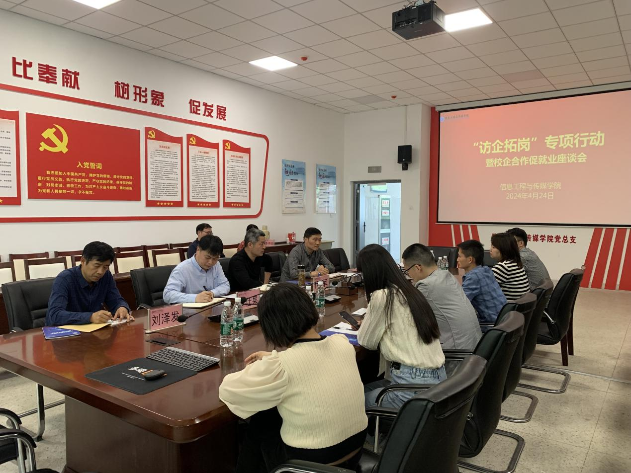 各企业代表分别介绍了公司概况、业务范围、岗位需求情况。双方就人才培养、实习就业进行了深入沟通,对进一步深化合作进行了交流和探讨。