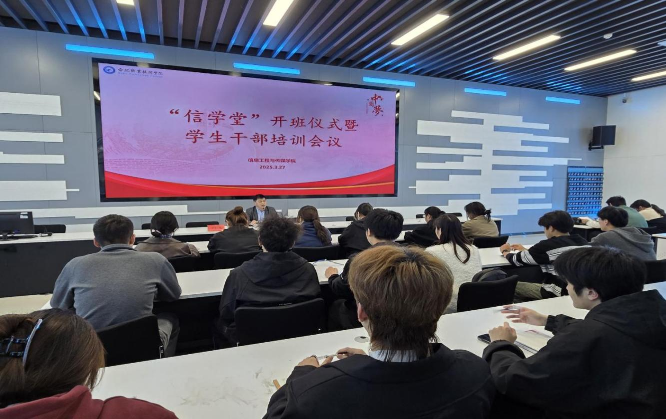 3月27日下午,金年会jinnianhuicom举办“信”学堂开班仪式暨学生干部培训会议。学院党总支副书记(主持工作)尹仕果、学院党总支副书记江寅昌、全体辅导员、在校班级学生干部共同参与此次活动。