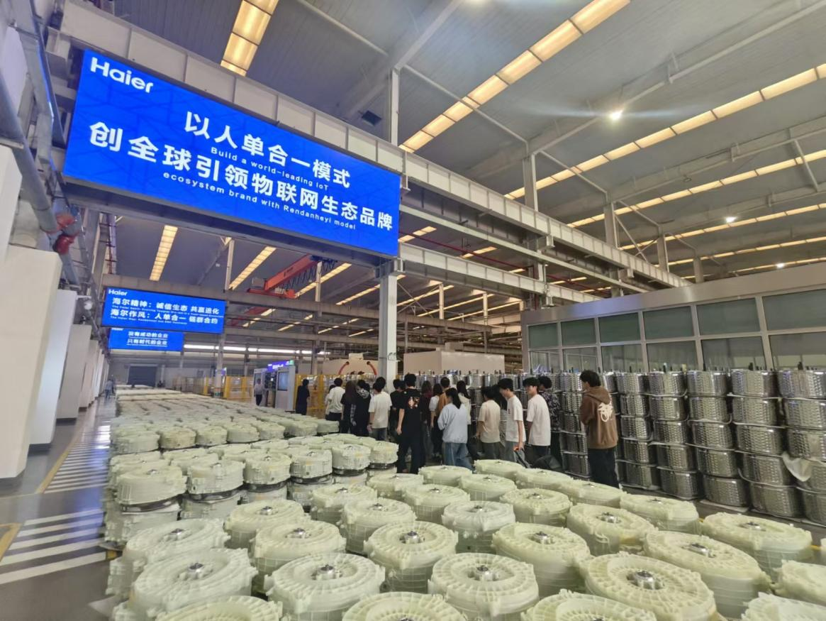 4月19日,校纪委书记何军、金年会jinnianhuicom院长尹宗平及三位带队老师带领即将走上实习岗位的130多名学生赴合肥海尔工业园海尔智家厂区开展研学活动。企业精心设计了线体参观、文化体验、宣讲交流等环节,帮助学生切身感受企业生产真实场景,体会技能立身的深刻内涵,理解企业的劳动文化,感悟新质生产力之“伟力”。