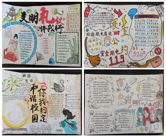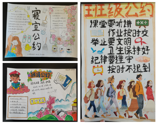 本次活动共收到班级推选作品64份,同学们共同制作公约,从生活作息、学业规划、宿舍安全、相处方式等多角度出发,达成了集体生活的约定,并制作出许多内容翔实、画面精美的班级和寝室公约手抄报。最终通过“智美信传”公众号点赞评选出19份优秀作品。