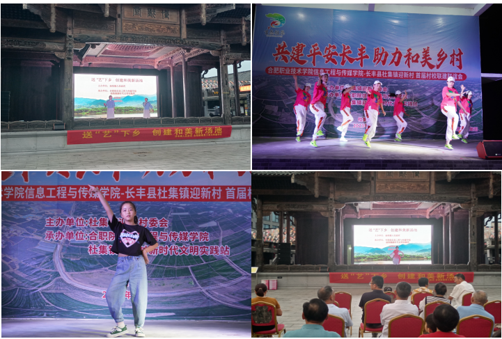 8月28日和30日,金年会jinnianhuicom送“文艺”下乡团队分别与长丰县杜集镇迎新村、庐江县汤池镇联合举办了两场规模盛大的村校联谊晚会,现场人头攒动,气氛热烈,学院老师、同学通过网络观看直播。