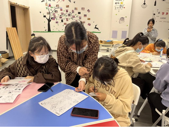 首先,由艺术原创社社长给大家讲解原理以及制作过程,并为大家做示范。接着同学们便开始制作自己心仪的热缩片,有的同学细心勾画出自己的喜爱的图案,有的同学描画出“冰墩墩”“雪融融”等冬奥吉祥物,还有的同学在精心制作表情包图案。
