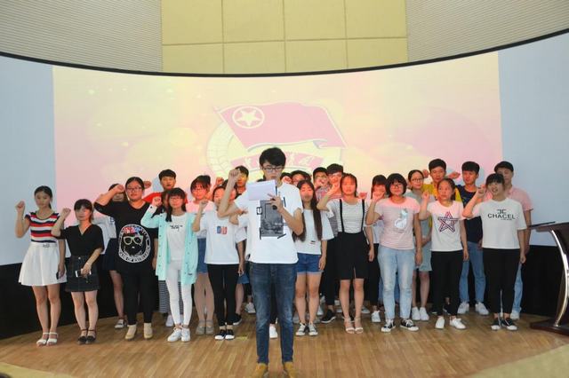 大会结束时,计算机系第十三届团学组织成员在团徽下,面对全体师生代表举起右手,举行了庄严的入职宣誓。