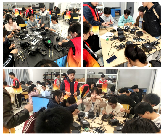 本次专业实践活动是学院大学生劳动教育与专业实践结合的有益尝试,活动分为理论学习与实践操作两大部分。在理论培训环节,由吕菲老师和社团负责人陈一畅同学深入浅出地为同学们讲解了焊接技术的基础知识,并结合多媒体教学资源,详尽介绍了焊接工具、方法及安全须知等内容。在实操训练阶段,大一同学们在学长学姐的协助下,以洞洞板、电阻丝、LED灯等电子元件为材料,发挥团队成员创意,焊接富有创意性的作品。活动过程颇具挑战而又趣味横生,为每一位参与者带来满满成就感的同时,更激发了他们对专业学习的热情。