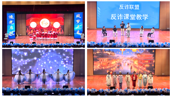 晚7时,晚会以气势恢宏的舞蹈《关大洲·象王行》拉开序幕,铿锵鼓点中,舞者们以刚柔并济的舞姿演绎千年文化气韵,引得全场掌声雷动;扬帆艺术团模特社的《霓裳时序·衣脉千年》时装秀紧随其后,汉服广袖轻扬、旗袍摇曳生姿;情景剧《反诈联盟》成为晚会亮点,让观众在笑声中筑牢安全意识;扬帆艺术团音乐社的独唱《没关系》以温暖声线抚平毕业季的迷茫,而《下一个天亮》的清亮旋律则唤起对未来的无限期待;压轴舞蹈《我的未来式》则将晚会推向高潮。