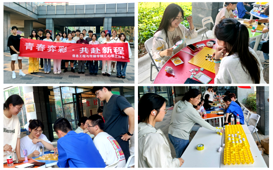 当象棋棋盘前并肩站立的是两位“军师”,当五子棋的连珠妙手竟能拼出创意画卷,当小小的乒乓球化作棋盘上的“奇兵”,一场颠覆传统的棋类创新活动在活动现场火热上演。团队象棋区的深思熟虑、创意五子棋区的专注拼接、乒乓五子棋区的活力四射,同学们在挑战中结识新友,在协作中增进情谊,在创新玩法中突破思维定式。“没想到棋还能这样玩!规则一变,乐趣和挑战都翻倍了,感觉大脑和身体都得到了锻炼。”活动负责人赵盼盼同学感慨道。