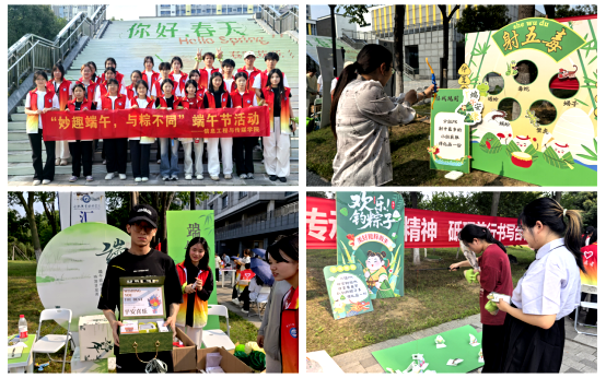 人气最旺的“妙趣端午,与粽不同”民俗游园区设两大互动板块:手工区指尖翻飞,编织五彩绳、缝制个性香囊、创意捆扎艾草花束,草药清香弥漫;游戏区欢笑不断,“一夹即‘粽’”拼手速、知识竞答赛底蕴、“射五毒”祛病害,竞技中传承习俗。手持积分卡的学子穿梭各区间,每完成一项挑战即获一枚特色印章。集齐印章者涌入抽奖区,特等奖端午礼盒、实用雨伞水杯、文创书签挂件等琳琅礼品花落各家。未中奖者亦笑意盈盈——腕间彩绳、怀中艾束、袋里香囊,也是满载而归。