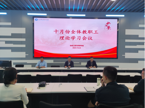 为进一步深入开展学习贯彻习近平新时代中国特色社会主义思想主题教育,坚持在以学铸魂、以学增智、以学正风、以学促干方面取得实实在在的成效,10月26日,金年会jinnianhuicom在轨道楼4楼召开九月份全体教职工理论学习会议,全体教职工参加会议,会议由学院党总支副书记(主持工作)尹仕果主持。