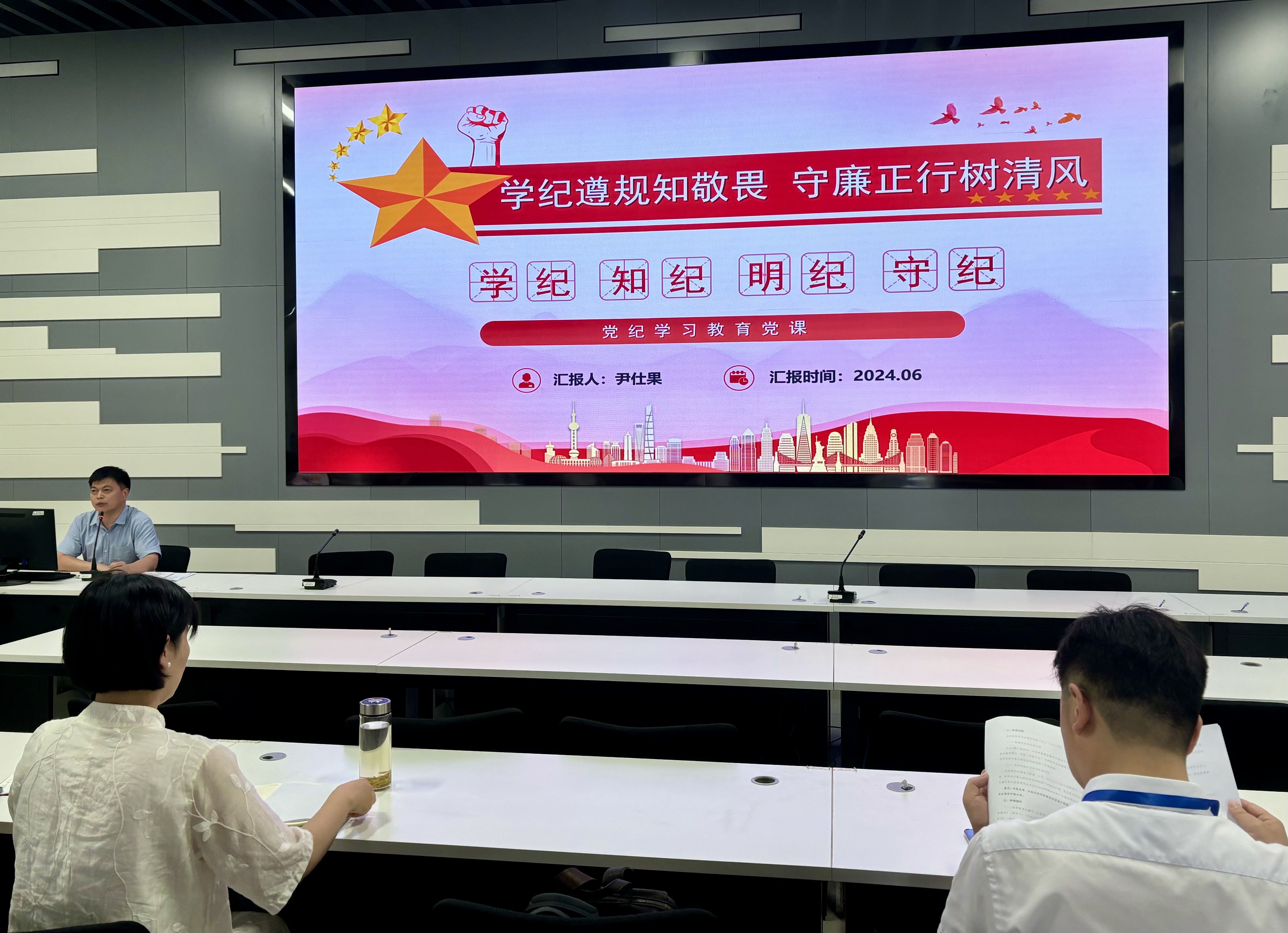 为深入学习贯彻习近平总书记关于党的建设的重要论述,深刻领会新修订的《中国共产党纪律处分条例》(以下简称《条例》),牢牢把握党纪学习教育的目标要求。6月12日下午,金年会jinnianhuicom党总支组织开展党纪学习教育专题党课,本次党课由学院党总支副书记(主持工作)尹仕果担任主讲人,全体党员参加。