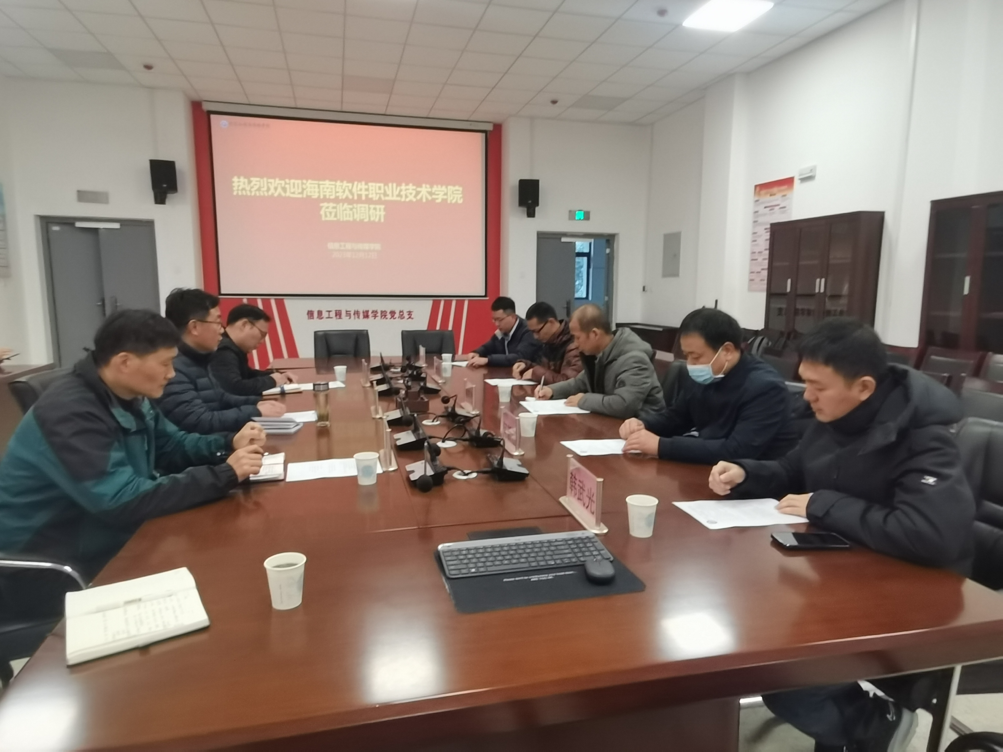 12月12日上午,海南软件职业技术学院网络工程学院院长杨登攀带领教研室主任一行4人来金年会jinnianhuicom开展专业调研。金年会院长尹宗平热情接待了来访客人,副院长、网络专业带头人张克柱、计算机教研室主任钱春阳参加了交流座谈。