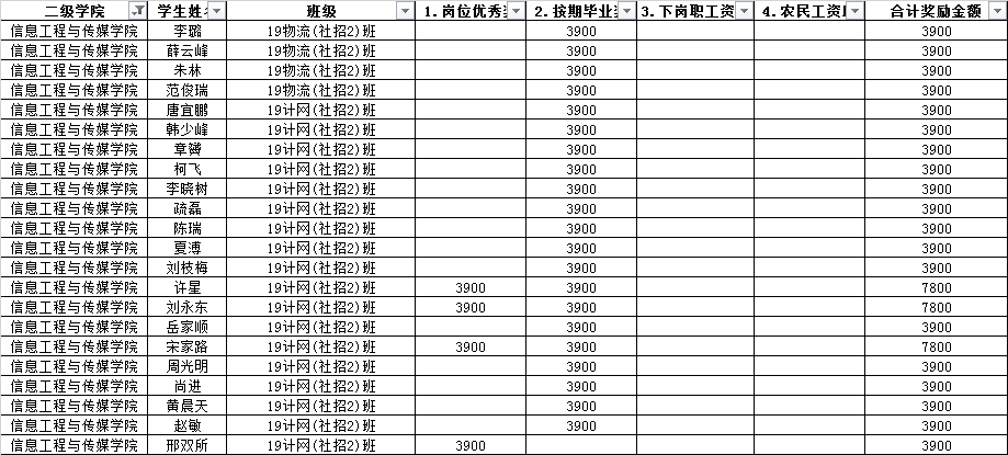 根据奖励政策,经学校审核,现将我校2019级第二批社招奖励学生名单予以公示。