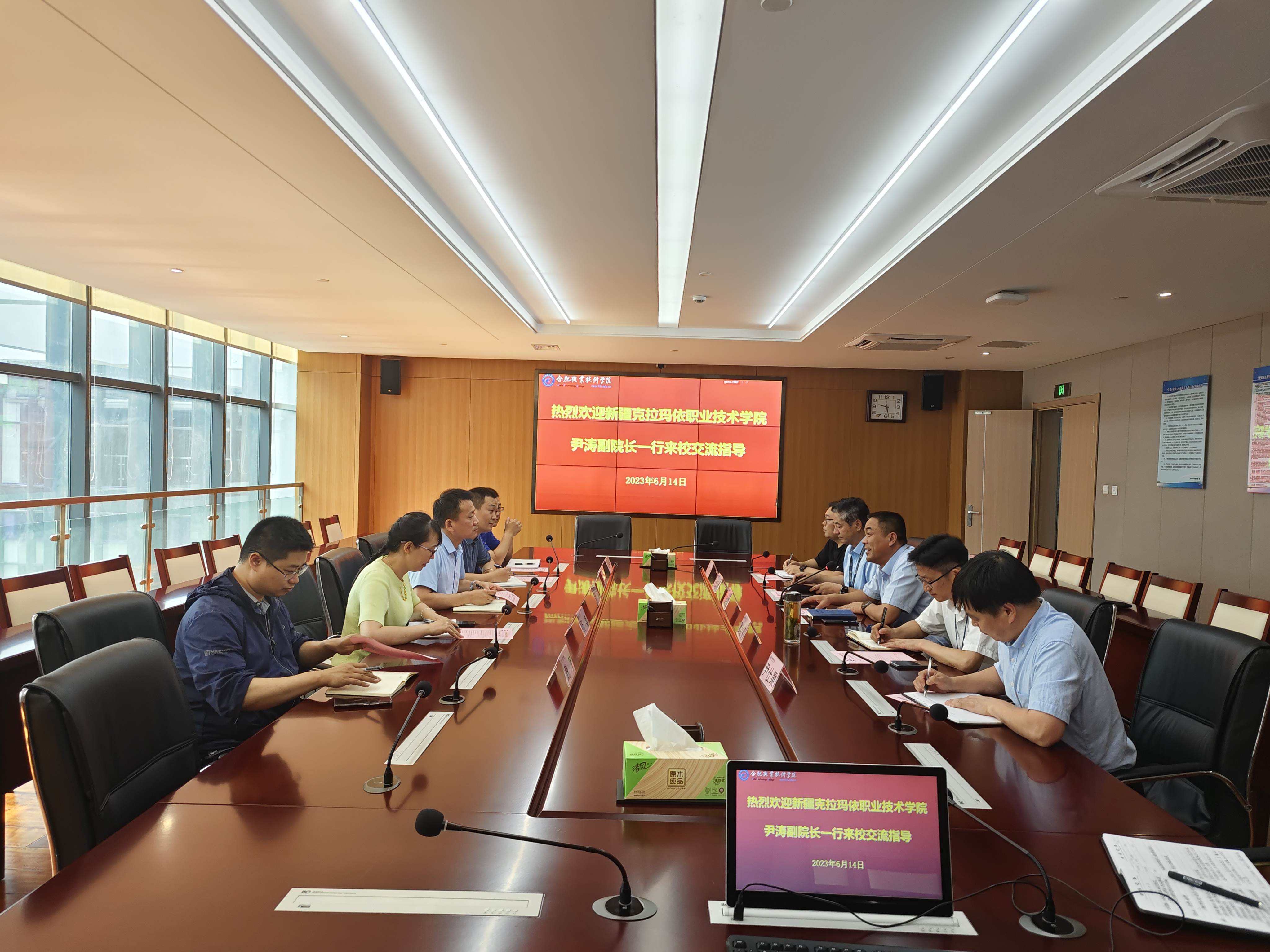 6月14日,克拉玛依职业技术学院党委委员、副校长尹涛一行来校考察网络安全产业学院建设工作,我校党委委员、副校长范家茂主持考察交流活动。教务处处长窦红平、金年会jinnianhuicom院长章炳林、金年会jinnianhuicom党总支副书记(主持工作)尹仕果等参加活动。