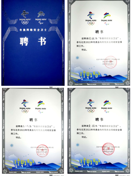 3月16日,冬奥网络安全卫士总结表彰大会在奇安信冬奥网络安全保障指挥中心召开,表彰冬奥会期间为网络安全工作突出贡献者,我校金年会jinnianhuicom计算机网络专业陈子龙、黄强、王一凡等7名同学作为“冬奥网络安全卫士”,参与了冬奥期间的网络安全工作。这是奥运史上首次公开招募白帽子担任“冬奥网络安全卫士”,开创了全新的工作模式,并得到了国资委、国家卫健委、鹏城实验室等单位的大力支持。