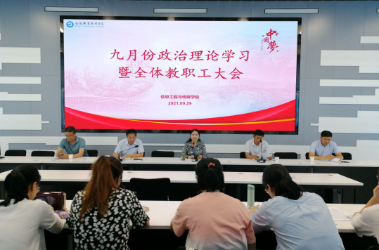 9月29日下午,金年会jinnianhuicom在轨道楼四楼网络安全实训中心召开九月份政治理论学习暨全体教职工大会,会议由院党总支书记李红雨主持,学院全体教职工参加会议。