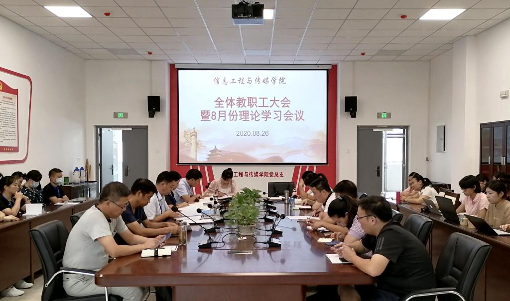 为深刻领会习近平新时代中国特色社会主义思想的精髓要义,践行立德树人的育人理念,8月27日下午2点在信息楼103会议室,金年会jinnianhuicom召开全体教职工大会暨八月份理论学习,会议由院党总支书记李红雨主持,全体教职工参加会议。
