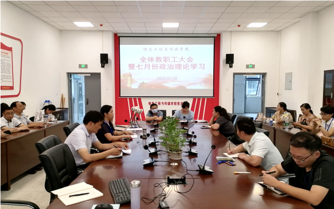 7月8日上午,金年会jinnianhuicom在信息楼103会议室召开全体教职工大会暨七月份政治理论学习会议。学院全体教职工参会,会议由院党总支书记李红雨主持。