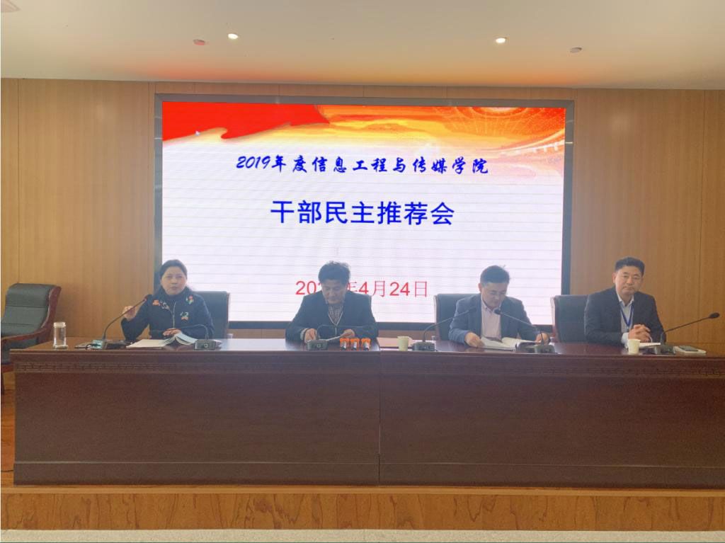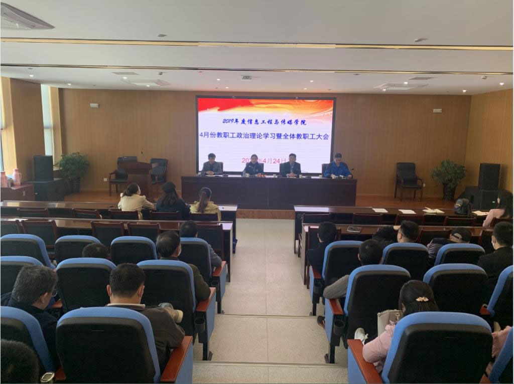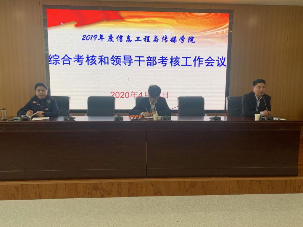 根据《金年会jinnianhuicom2019年度二级学院 (部门)综合考核和领导干部考核实施方案》和干部推荐相关工作的统一部署,4月24日,信息工程传媒学院在图书馆报告厅召开2019年度综合考核会议暨2020年全体教职工大会,会议由学院党总支书记李红雨主持,党委综合考核组第六组组长朱道林一行出席会议,学院全体教职工参加会议。