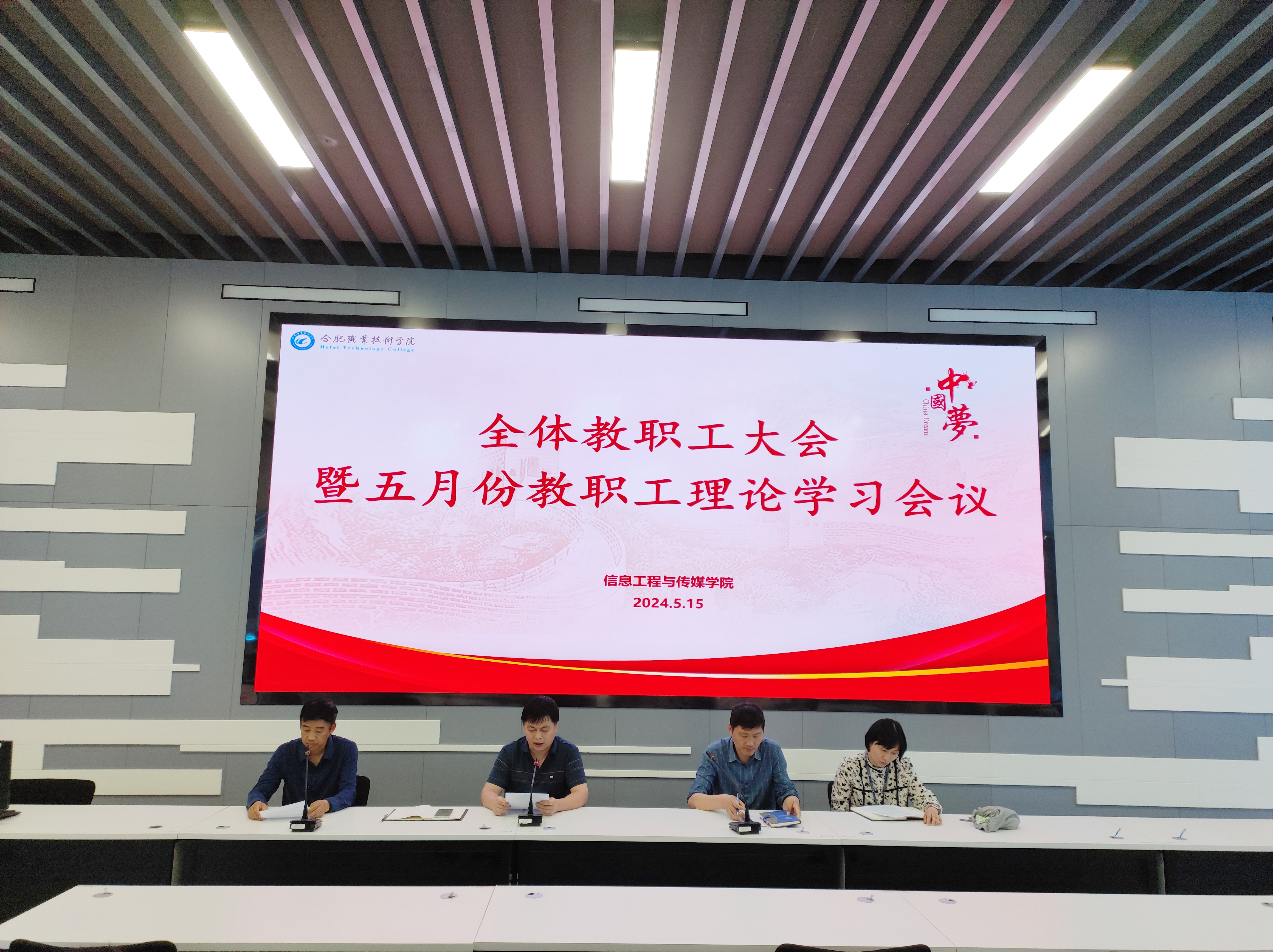 5月16日,金年会jinnianhuicom在轨道楼四楼召开全体教职工代表大会暨全体教职工大会,会议由学院党总支副书记(主持工作)尹仕果主持,全体教职工参加大会。