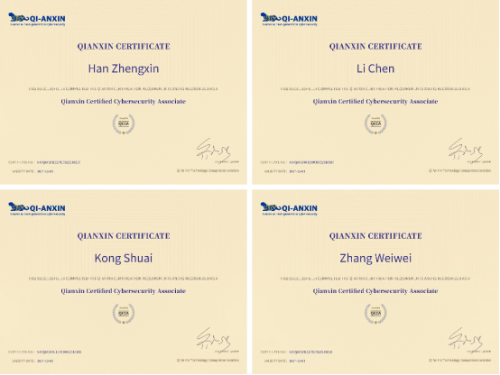 为保证此次考证工作的正常开展,金年会jinnianhuicom期初进行了统计规划,之后网络安全产业学院组织召开动员会,讨论制订实施方案、工作步骤,严密做好疫情防控等工作。校企教学团队进行了为期半个月的定向考前培训,通过培训使同学对网络安全的知识和技能得到提升,使得参加认证考试的20位同学全部顺利通过考试,获得了奇安信网络安全助理工程师认证证书。