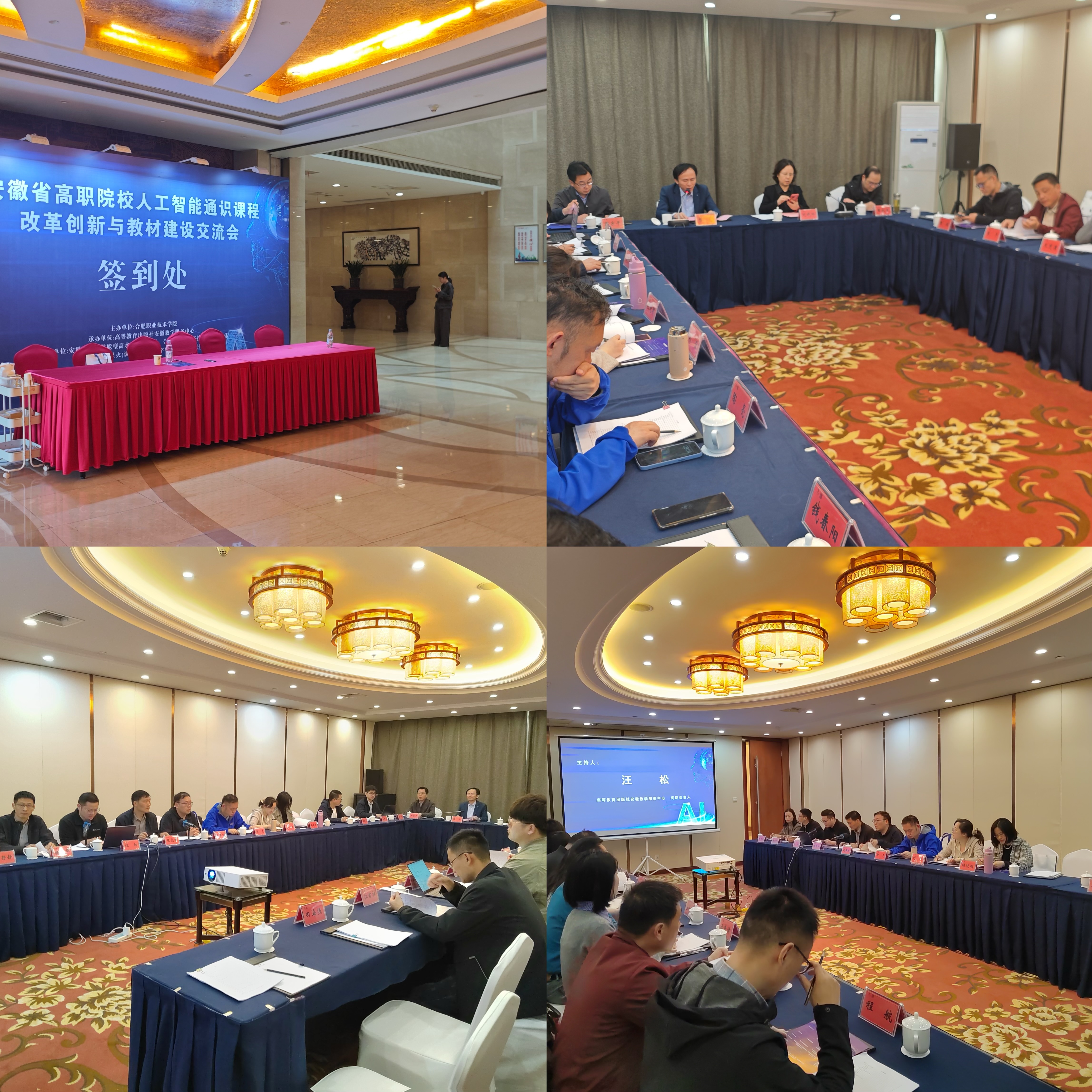 2025年4月12日,在合肥天鹅湖大酒店迎来一场聚焦职业教育前沿的交流会——安徽省高职院校人工智能通识课程改革创新与教材建设交流会。本次会议由金年会jinnianhuicom主办,高等教育出版社安徽教学服务中心承办,安徽省地方技能型高水平大学联盟、合肥(新站)高新技术产教联合体和讯飞星火(认知大模型)数字生态产教融合共同体协办。会议旨在深化产教融合,为人工智能时代下的职业教育改革注入新动能。参加会议的有科大讯飞股份有限公司、高等教育出版社以及来自省内10余所高职院校。到会的领导有金年会jinnianhuicom校长檀明,高教社安徽教学服务中心主任刘晓玲,金年会jinnianhuicom院长尹宗平,现教中心主任黄永生,金年会jinnianhuicom副院长张克柱,高等教育出版社高职事业部计算机分社分社长白颢等。
