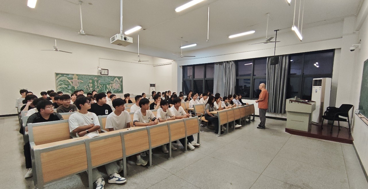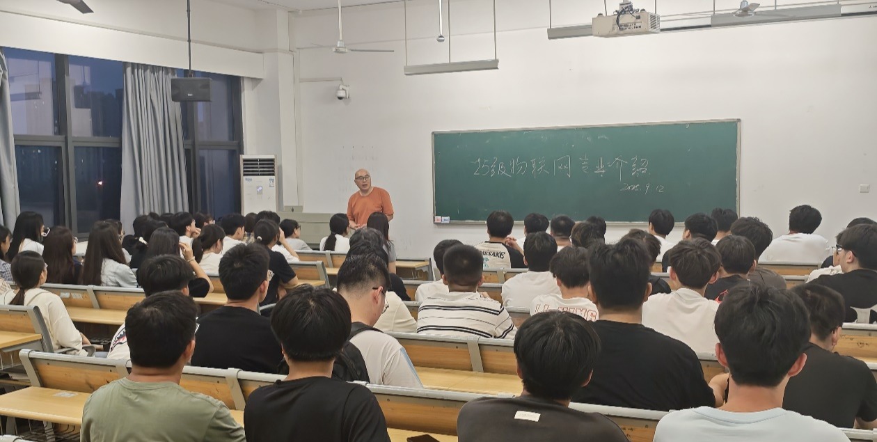 2025年9月12日星期五晚,25级物联网应用技术专业两个班级学生在汇心湖校区南教学楼311教室聆听物联网教研室童友波老师关于物联网专业的介绍,童老师分别从专业的开设时间、专业的建设、技能竞赛、学生的上升渠道以及未来在校两年的规划进行介绍和交流,尤其在当今人工智能日益快速发展时代,作为物联网专业的同学如何定位自己做了一个分析。