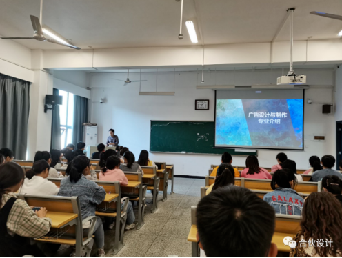 针对就业问题,骆阳老师做出一系列阐述后,骆老师开始向同学们展示以多组ppt图片展示出优秀作品集,其包括海报、logo、图集、明信片以及各类优秀设计作品,同学们反应积极,面对优秀发出感叹。骆老师又为同学们娓娓道来不同社团活动以及不同获奖参赛作品,陈列出不同年级的不同作品,解释出前期的基础展示到后期的图像处理,广告以及海报设计、版式设计,企业形象设计、logo、ui界面设计,利用各类图片,帮助同学们树立职业规划,明确就业目标。