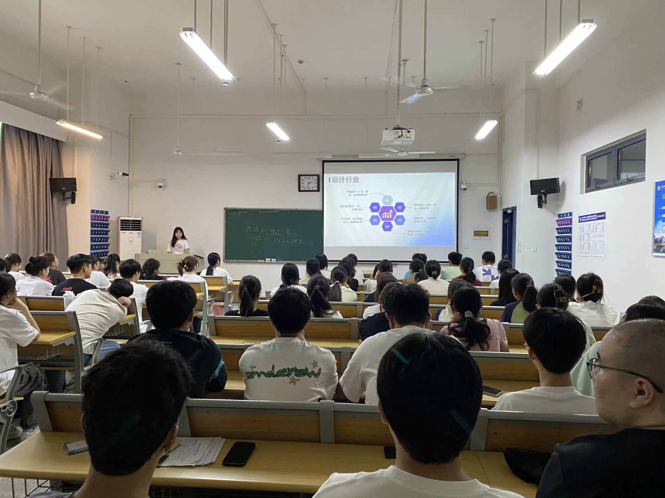 韦啸老师强调了学校注重产教融合,为学生提供实习实训机会,鼓励学生参与创新项目,培养实践能力和创新思维,并展示了往届学生的优秀作品,让新生直观感受到数字媒体艺术设计的魅力和创意的无限可能。
