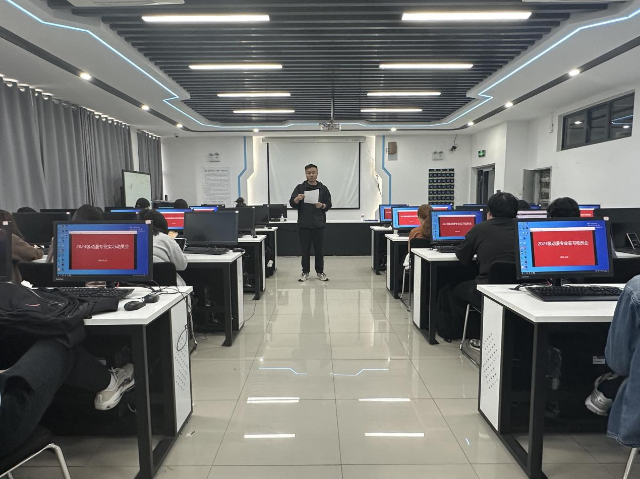 2025年4月29日下午,在信息楼B304召开2023级动漫制作技术专业的实习动员会。本次会议由实习指导老师吴晨亮、何思翰主持召开。