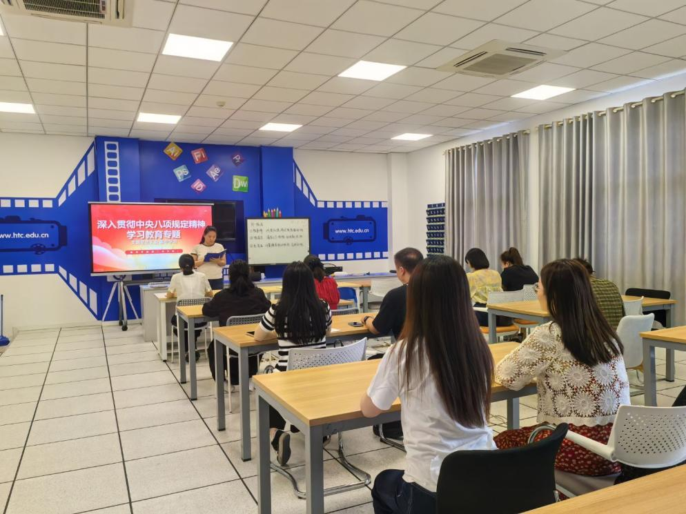 2025年5月14日下午,金年会jinnianhuicom第二党支部在信息楼B403开展深入贯彻中央八项规定精神党员学习教育。此次专题教育学习由支部书记许雁翎主持,全体支部党员参加,旨在强化支部党员的纪律意识,推动党风廉政建设。会上,金琼老师担任领学工作,详细解读了中央八项规定精神的重要内容与深远意义。从改进调查研究、精简会议活动,到精简文件简报、规范出访活动等内容逐一做出解读。杭航老师结合实际案例,深入浅出地阐述了深入贯彻中央八项规定精神对党员日常行为规范的指导作用,让支部教师对规定有了更为深刻的理解。
